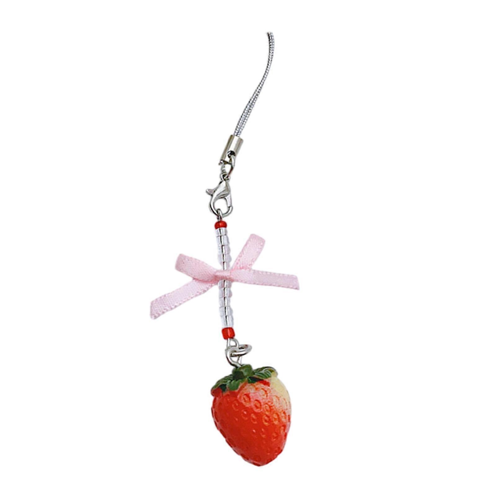 Handmade Strawberry Resin Keychain Bowknot Phone Charm Cute Bag Accessory Bowknot Keychain Resin Material Gift for Women