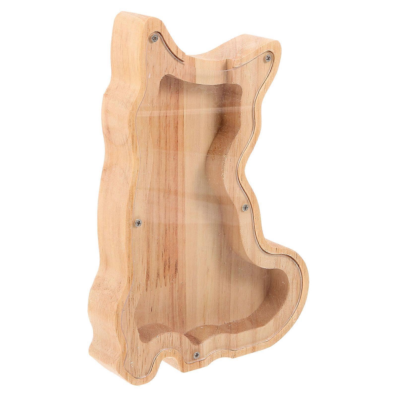 Animal Shaped Coin Bank Wooden Piggy Bank Dog Shape Money Saving Tool Children's Savings Tool Beige 20.00X13.00X3.00CM 1Pcs