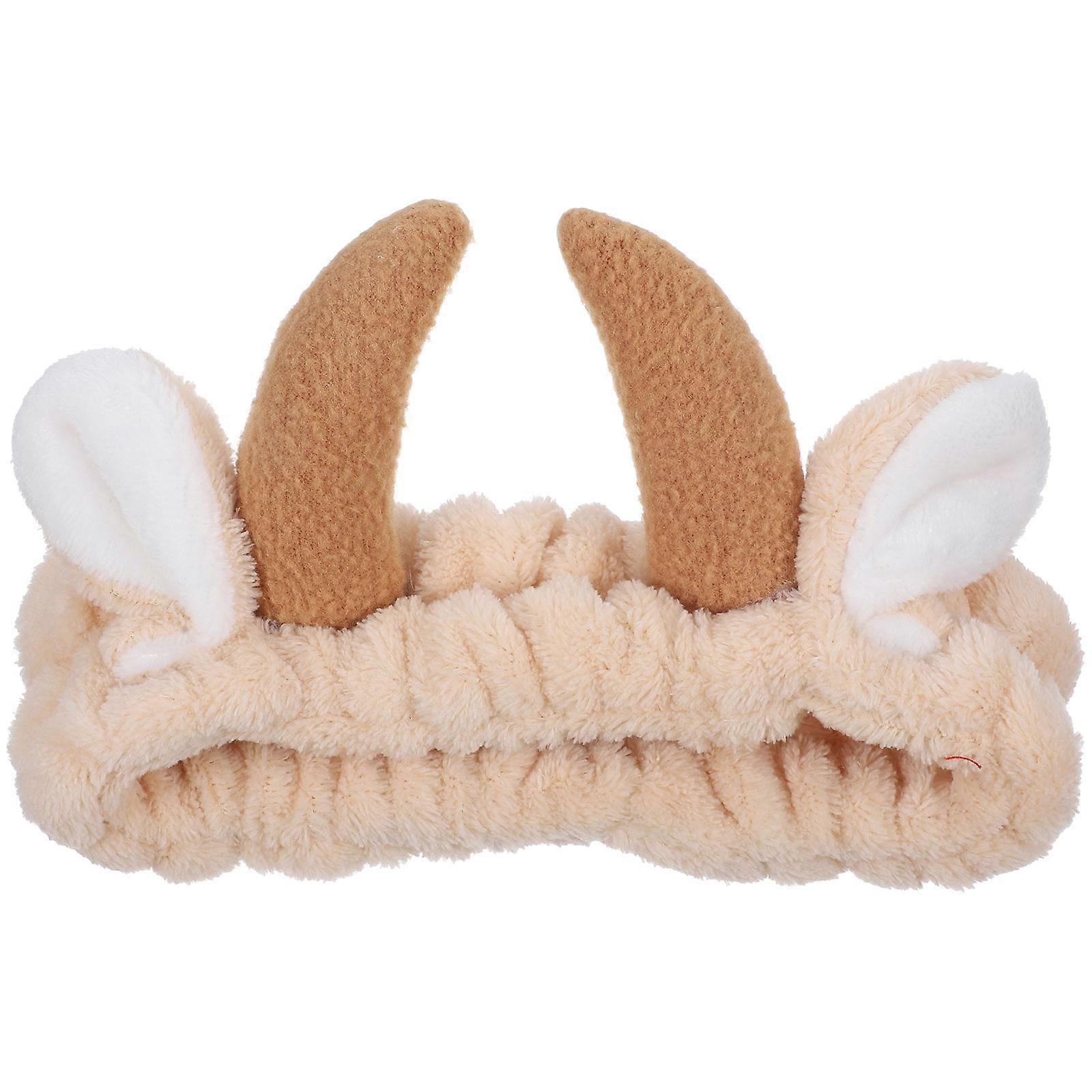 Animal Face Wash Headband Cattle Horn Headband Women Khaki 20x10cm Taking a Bath 1Pcs