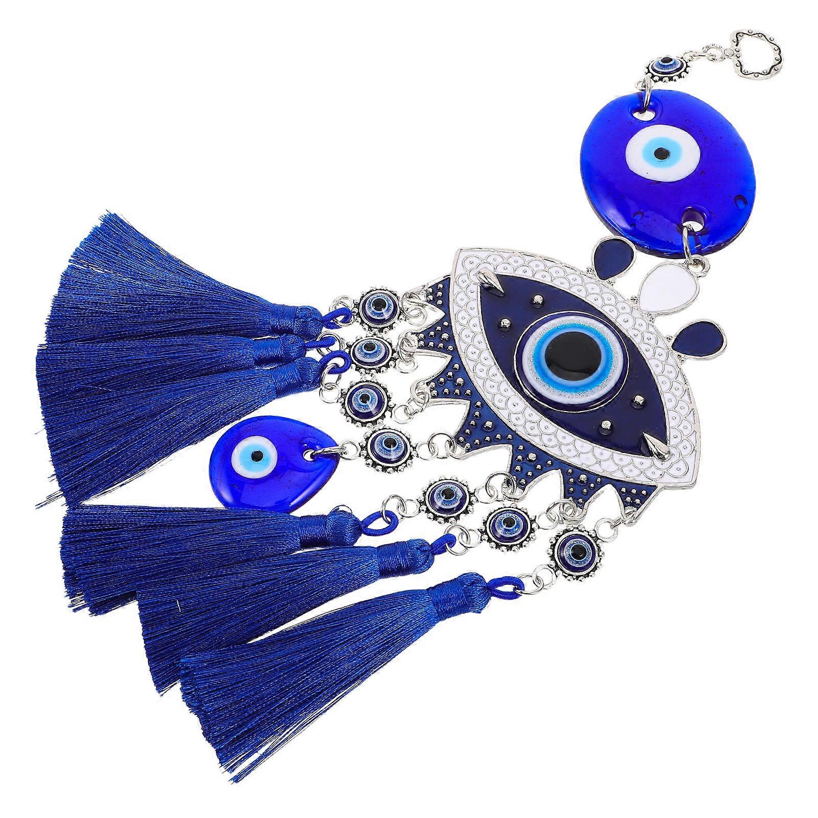 This vintage-style ornament features a striking blue eye, often referred to as the evil eye, crafted from metal and adorned with intricate details. practical for hanging on walls. The wind chime element creates sounds, enhancing the ambiance of your living space. Features -Color:Blue -Material:Rope+glass -Size:32.00X9.50X0.50cm/12.58X3.73X0.20in -Unique vintage design: showcasing a distinct vintage style, this ornament adds a touch of european and american charm to your wall decor, enhancing the artistic appeal of your space -Soothing sound: the metal wind chime produces a pleasant sound, creating a serene atmosphere that promotes relaxation and comfort in any room -Eyecatching evil eye: the evil captures attention, making it a standout piece in any room and adding a mysterious and fun element to your decor - and : crafted for longevity, this ornament maintains its beauty over time, ensuring it remains a reliable and attractive addition to your decor -Versatile placement: suitable for various settings, it can be hung on walls, behind doors, or in front of windows, practical for homes, offices, cafes, and more, adding a unique decorative touch Package list: 1 x hanging ornament