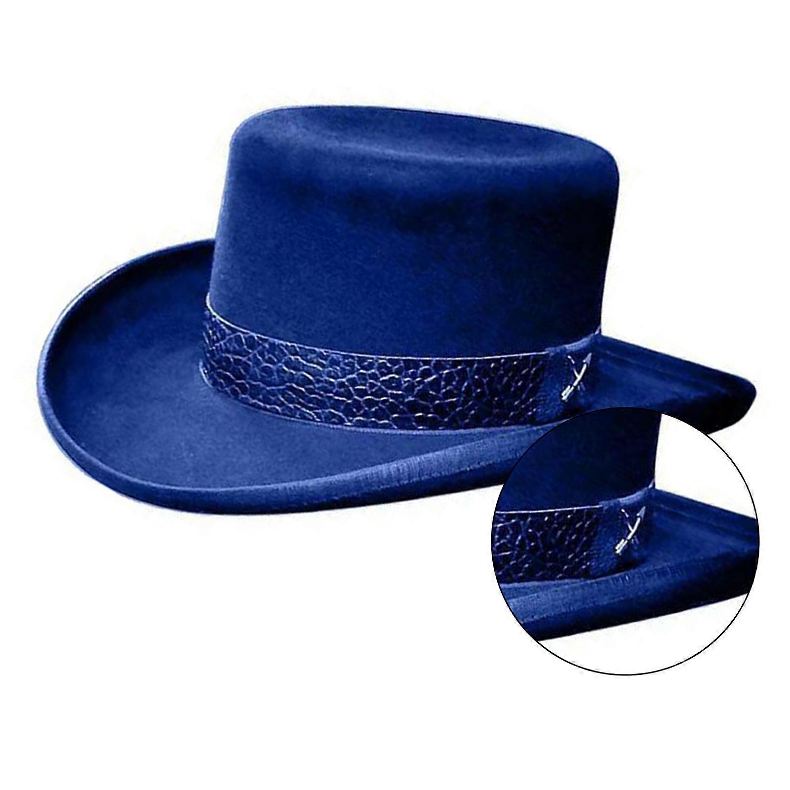 Vintage Fedora Hat Wool Short Brim Western Cowboy Hat Versatile Trilby Top Hat for Dinner Outdoor Casual Wear sapphire
