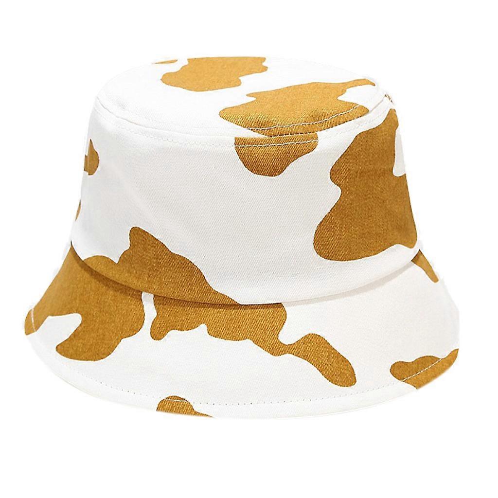 Vintage Multicolor Cow Print Bucket Hat Hip Hop Sunscreen Panama Fisherman Cap Yellow