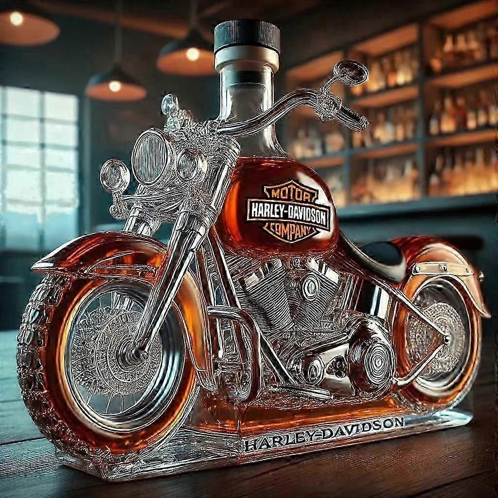 בקבוק ויסקי בצורת אופנוע 11 oz חידוש לגין זכוכית חריטה תלת מימדית יצירתית לגברים רוכב אופנוע/אוהב אלכוהול אספן