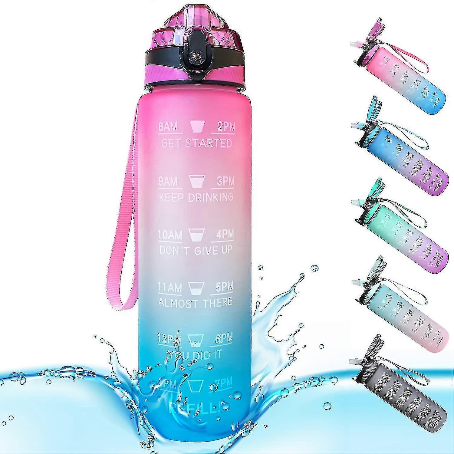 Sports Water Bottle 1 Litre Time Markings And With Straws Bottles Water Bottle Opens Suitable For Fitness Outdoor