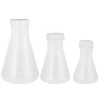 3Pcs Plastic Flask Conical Flask with Screw for Laboratory Students Experiment Chemistry White (50ml+100ml+500ml)