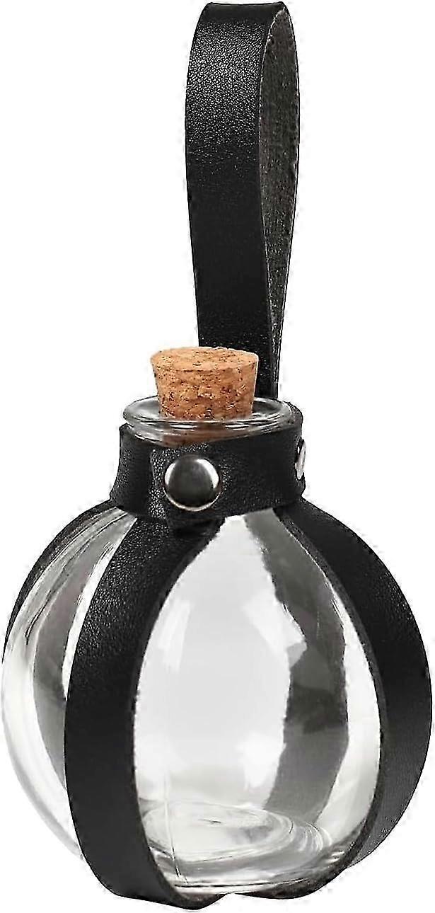 Halloween Dark Magic Potion Cork Bottle Round Spherical Glass Bottle for Halloween Props (Black) 25-26