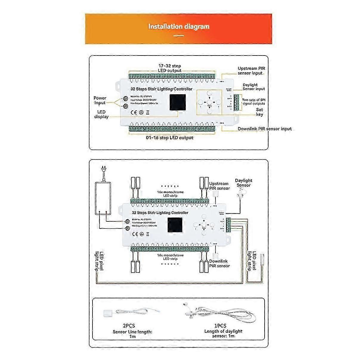 Sensor Stair Controller 32 Steps 2-In-1 Tread Plus Running Water Light Sensor Panel Switch Human Infrared Controller