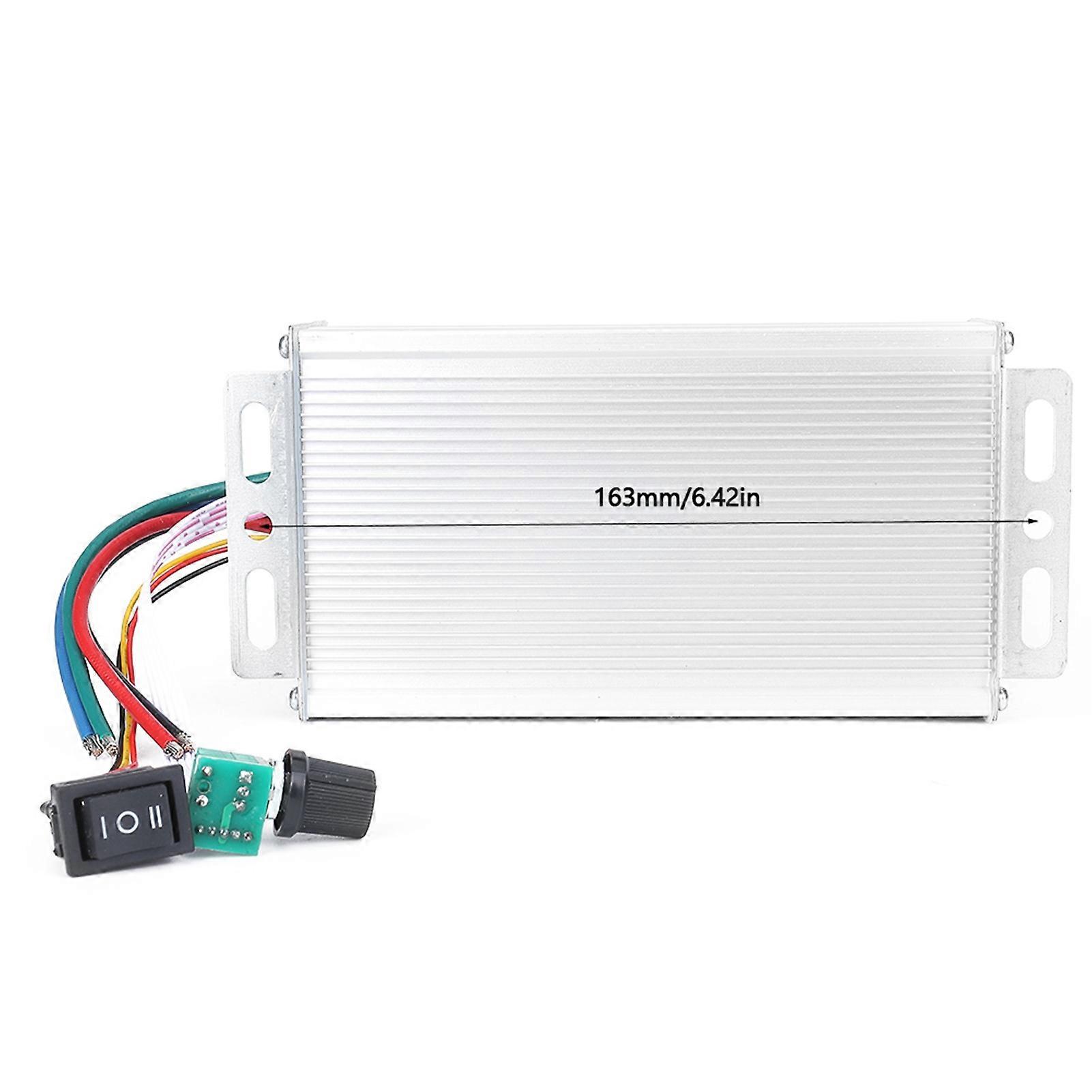 DC Brush CCW CW Motor Speed Controller 12~60V Motor Speed Governor Regulator 80A Features: The knob switch can adjust the motor speed steplessly. With the metal housing,it is easy to install and use. The speed controller is made of premium material,durable and has long service life. The motor controller can make the motor rotate counterclockwise and clockwise. Specification: Output Current: 80A Speed Adjustment Range:0~100% Control Frequency: 21KHz Speed Adjustment Mode:Knob Digital Display Positioning:0~100% Connection Type:Electric Wire Suitable for:DC Brush Motor Size:150 * 85 * 41mm / 5.91 * 3.35 * 1.61in Installation Size: 163mm/6.42in(2*Dia.6mm/0.24in) Weight: 460g/16.23oz Package List: 1*Speed Controller