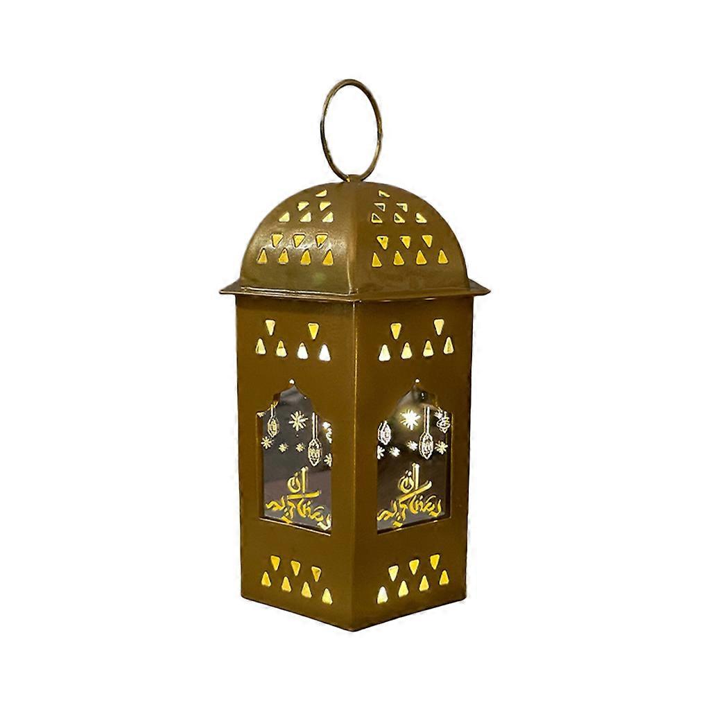 Wrought Iron Eid Ramadan Wind Lantern Warm Lights Lamp for Creative Ornament for Home Islam Muslim Event Party Supplies Outdoor Decorative Lamps