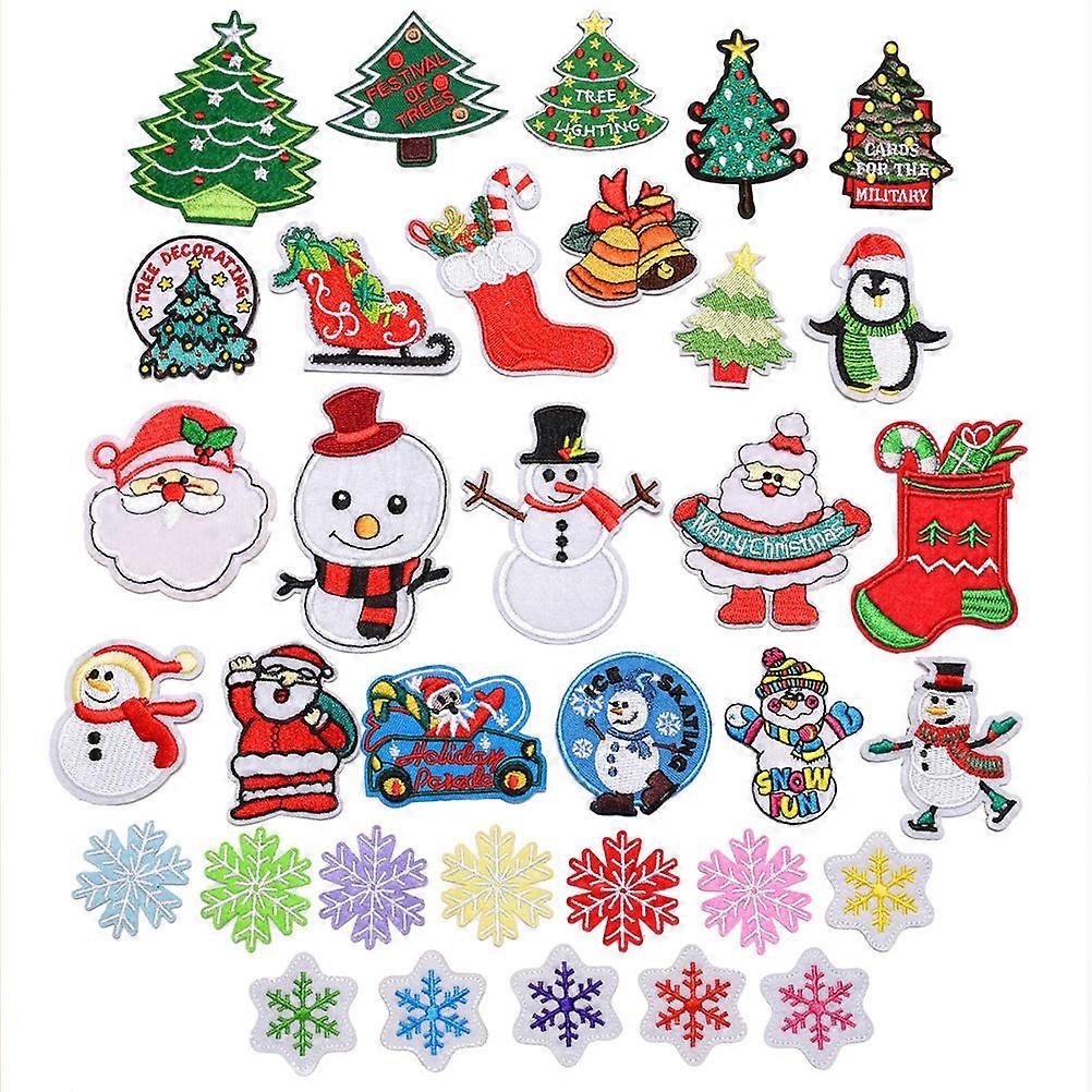Iron On Embroidery Patches DIY Sew Decoration Appliques Christmas Themed For T-Shirt Skirt Repairing 34Pcs
