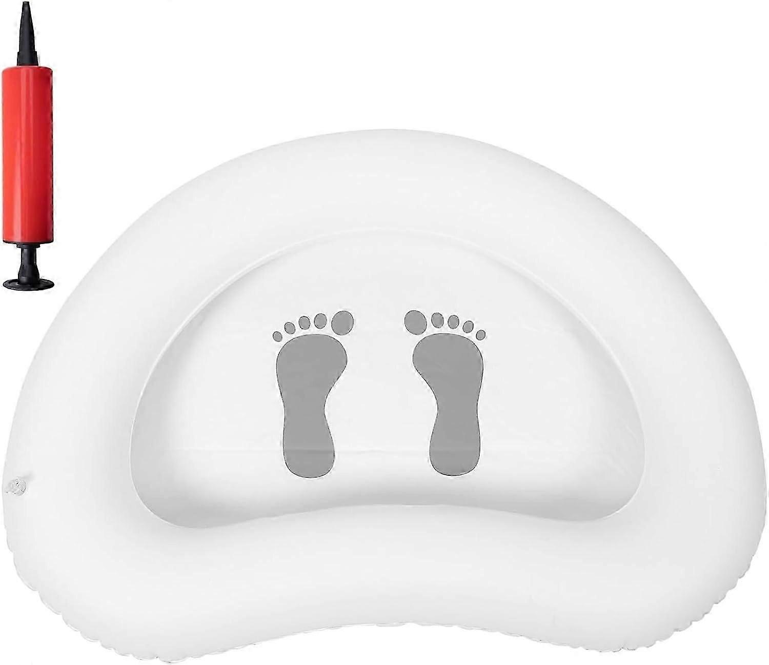 Inflatable Pool Foot Bath Basin: This inflatable basin is a convenient way to clean your feet before entering the pool or hot tub. Foot bath basin helps to remove dirt, sand, or other debris from your feet, preventing them from contaminating the water and keeping it clean for everyone to enjoy. Premium Material: This foot soaking bath basin is made of quality PVC, that is durable, soft and easy to use, give away a pump(random color). Easy to Use: Setting up the inflatable foot tub is quick and easy. Inflate it using a pump or by blowing air into it, and it will be ready to use. To clean your feet, fill the tub with water and step in. The tub is designed to be spacious and has a suitable depth to accommodate both feet comfortably. Portable Foot Bath: The inflatable foot bath has a very small size after deflation and it can be easily taken to the beach, camping, and outdoors. The foot tub is only 3-4 inch high when folded, and can be quickly unfolded and folded. You can fold it and store it under the bed, desk or sofa. Multi-function: Pool feet wash basin is versatile. It removes dirt before entering the pool or spa and can also be used for camping trips or outdoor adventures. Its quick inflation and deflation make it a useful accessory for other cleaning purposes.