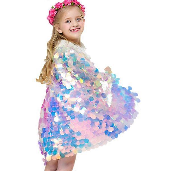 Mermaid Shaped Cloak Girls Performance Clothes Sequin Cape Lovely Mantle Size L Colorful