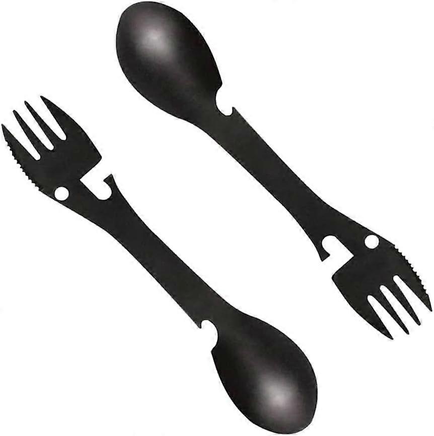 5 in 1Mulit tool : A 5 in 1 multifunctional spork spoon is a versatile eating utensil that combines the features of a spoon, fork, knife, bottle opener and can opener all in one compact tool. Its design to be convenient for outdoor activities like camping, hiking, or picnicking where space and weight are limited. : The outdoor spork is compact, lightweight, and versatile, making it convenient to bring along in a backpack, purse or even a pocket. Its size 6.9 inches and shape are optimized for portability, ensuring that it doesnt take up much of your space and can be easily transported wherever you go : Made of sturdy stainless steel, heat resistant spork spoon has the ability to withstand high temperatures, and protecting your hand and giving you pleasant feel. Easy to clean, maintain and reusable which is important for kitchen tool. : Spork spoons are compact and take up less space compared to carrying separated spoons and forks making them ideal for backpacking, camping picnics and other activities where spaces are limited. It can be use to scoop, stir and stab food, making it suitable for a wide range of dishes. : It is a great gift for several reasons firstly its multifunctional, its a versatile tool suitable for a wide range of foods and ensures long-lasting use. Additionally, a spork spoon is a thoughtful, practical and fun gift choice that can bring joy and convenience to the recipients dining, making it a great option for various occasions including birthdays, holidays and more. Due to manual measurement, please allow for a slight error. Please make sure you don't mind before bidding. Colors may vary depending on the monitor, please understand. Attention:Hello, please pay attention to your shipping address when purchasing products. If your shipping information (such as name, street, house number, doorbell/email without name, etc.) is incorrect, the order will not be delivered correctly