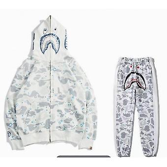 גאות זרימת אופנה חדשה הדפסה דיגיטלית תלת מימדית ראש כריש גברים ונשים זוגות סט סוודר רעול פנים