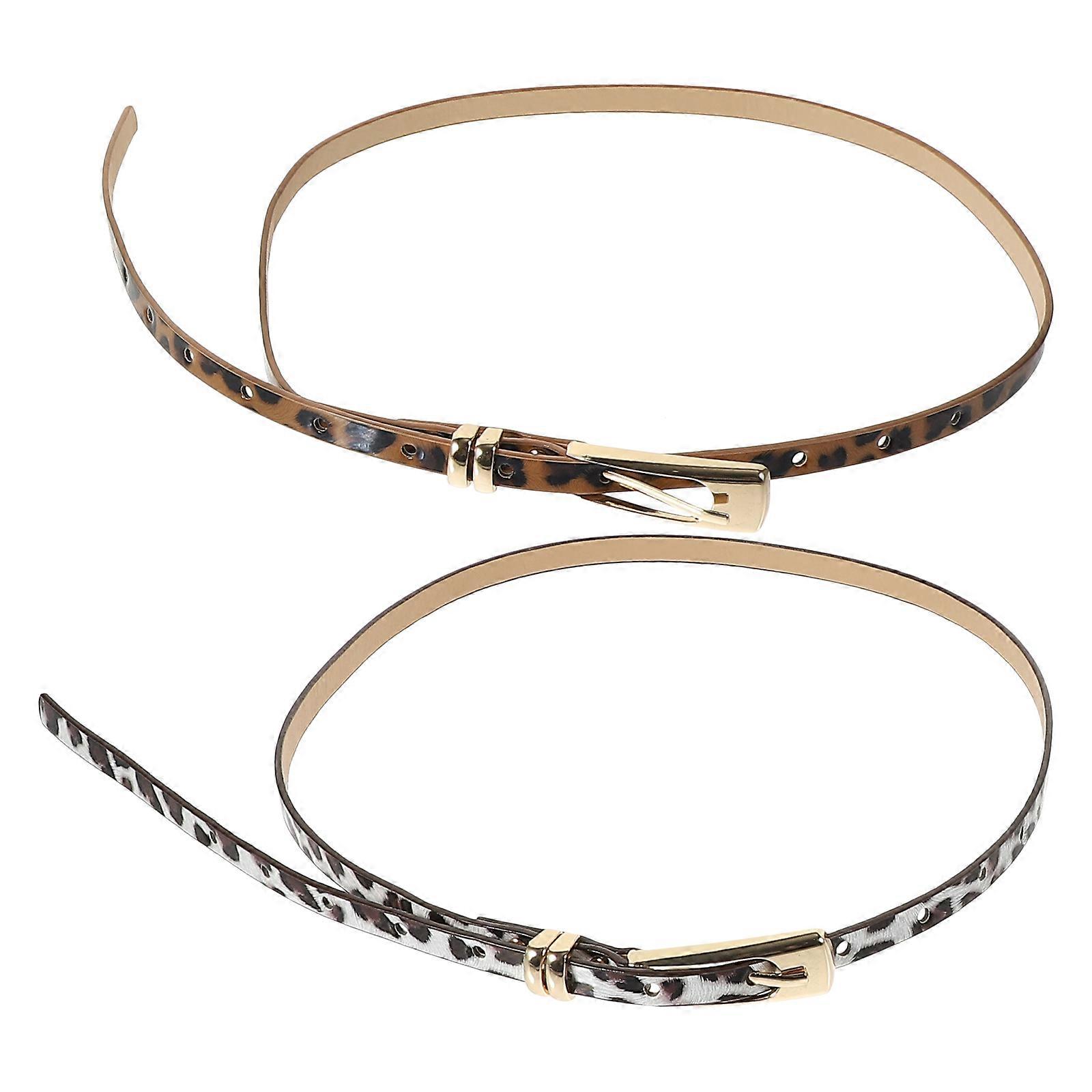 Ladies Fashion Thin Belt Women Jeans Belt Metal Buckle Dress Assorted Color Adjustable 2Pcs