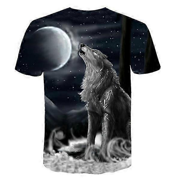 Men's Fashion 3d Wolf Print T-shirt Personality Cool Print T-shirt Short Sleeve