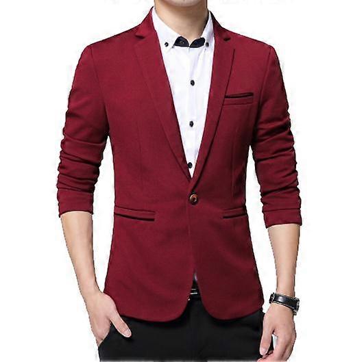 Men's Slim Fit Casual One Button Suits Coat Solid Blazer Business Jacket