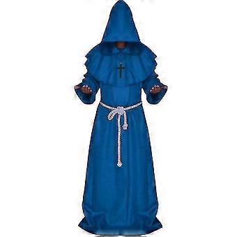 Men Hooded Robe Cloak Friar Medieval Priest Costume A