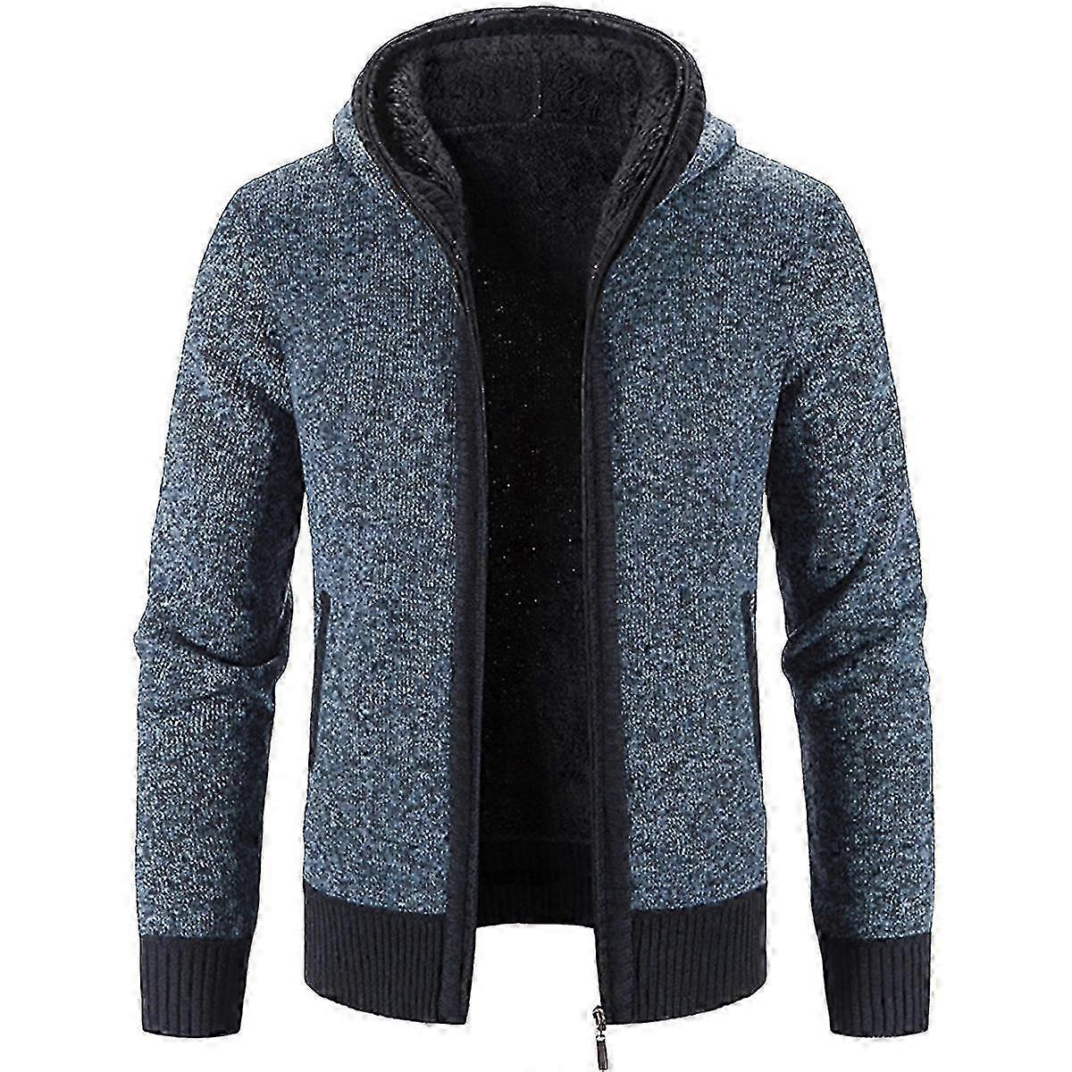 Mens Winter Hooded Thick Cardigan Fleece Lined Knit Sweater f26
