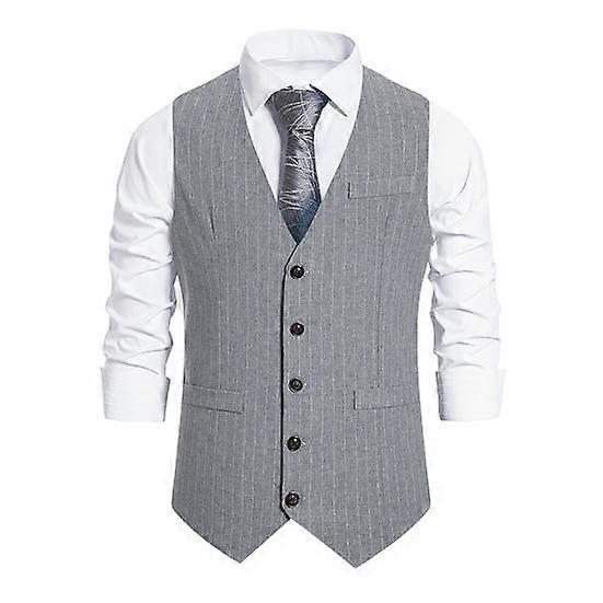Men Suit Waistcoat V-Neck Sleeveless Striped Print Formal Vest Coat Single Breasted Pockets Business Suit Vest