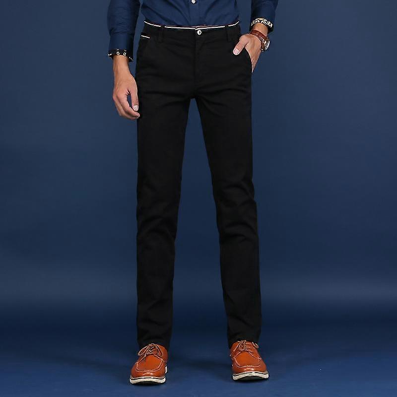 Men Straight Long Pants Straight Slim Male Classic Black Khaki Business Office Casual Trousers