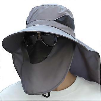 Men Fisherman Hat with Face And Neck Cover Large Brim Hollow Mesh Anti-UV Sunscreen Full Cover Great Breathability Outdoor Fishing Travel Cap QingHai