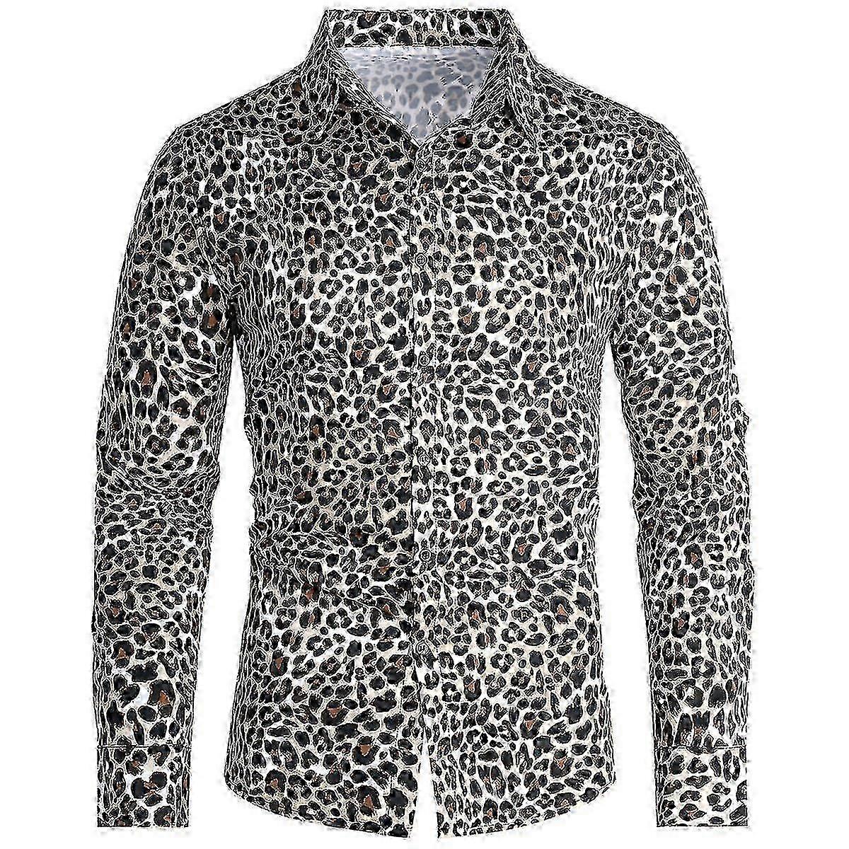 Mens Daily Wear Shirt Leopard Printed Lapel Loose Shirt