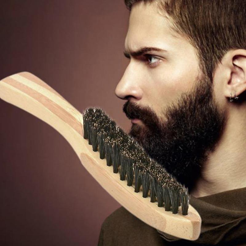 Men Brush Boar Bristle Mustache Shaving Comb Face Massage Facial Hair Cleaning