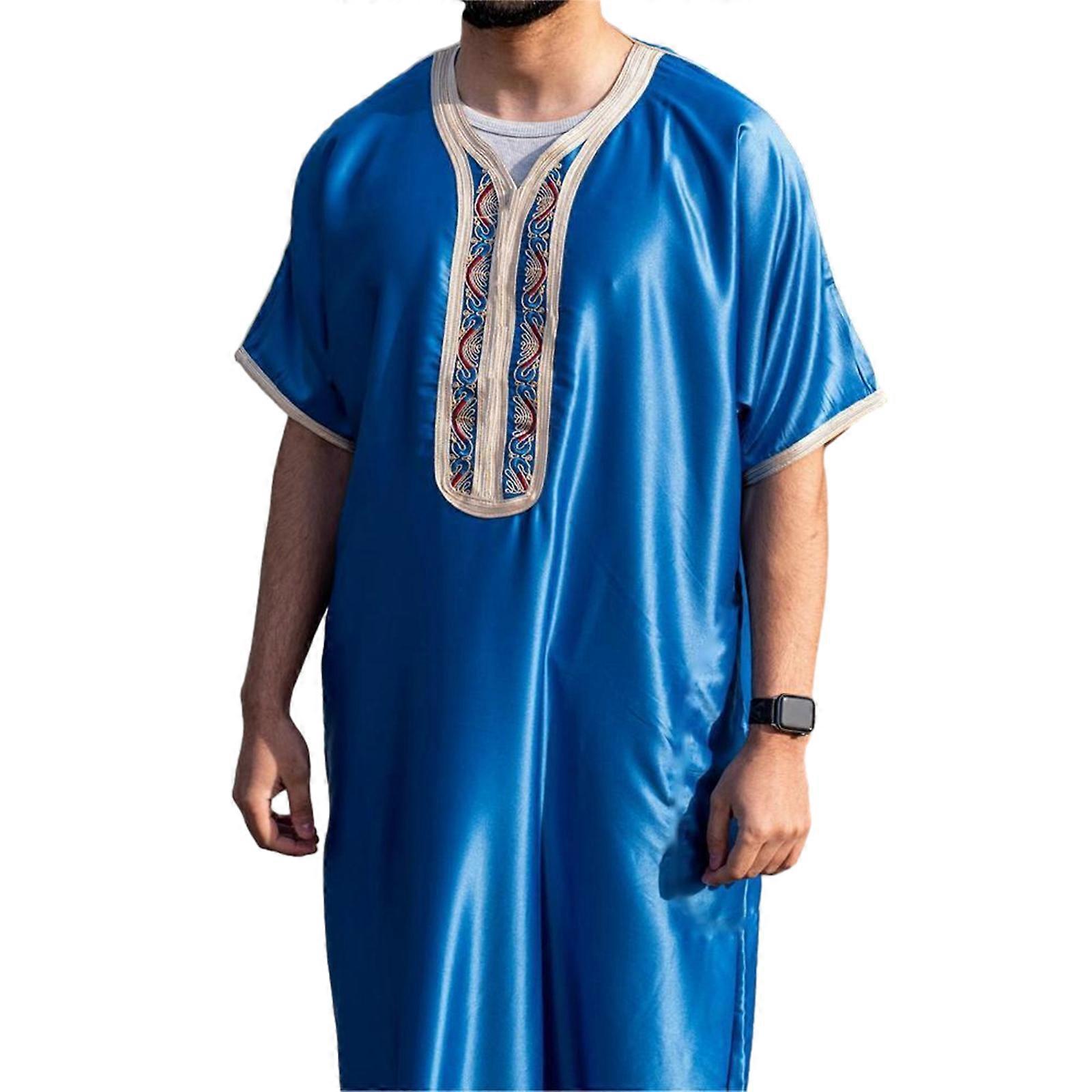 Men Muslims Robes Short Sleeve Islamic Middle East Dubai Thobe Saudis Arabia Ethnic Kaftan Loose Maxi Dishdasha Kandoura XL