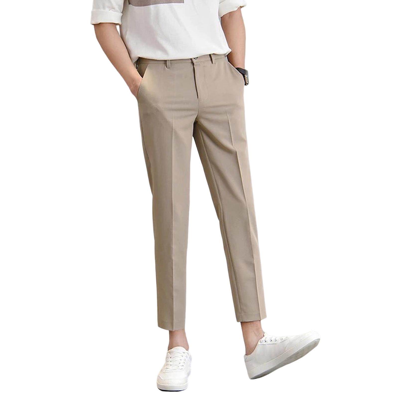 Men Ninth Pants with Pockets Straight Leg Slim Fit Mid-Waist Casual Wear Ankle Length Business Office Summer Casual Suit Pants Men Clothing