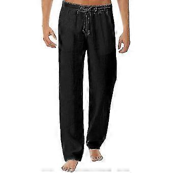 גברים מכנסי פשתן כותנה גמישים מותניים גמישים קז'ואל חוף יוגה מכנסי יוגה