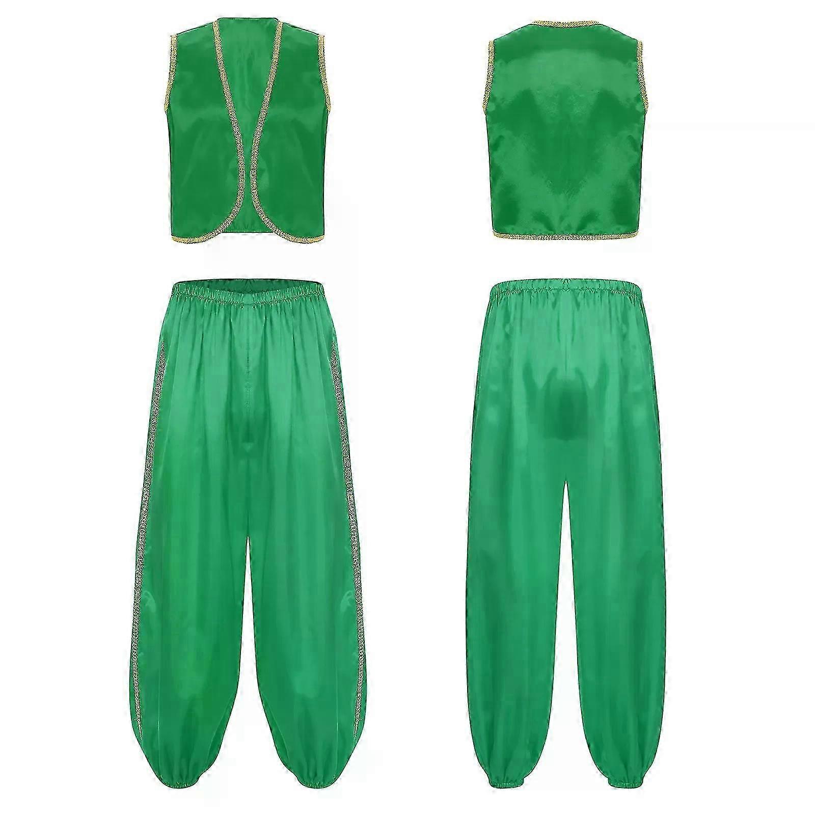 Men Halloween Theme Party Arabian Prince Cosplay Costume Gold Trim Satin Vest with Pants Carnival Fairytales Role Play clothes