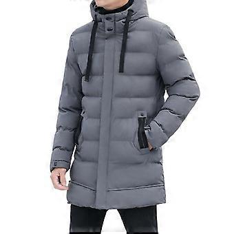 Men Cotton Coat Hooded Drawstring Long Sleeve Solid Color Jacket Coat with Pockets Loose Fit Zipper Placket Mid-length Quilted Outwear