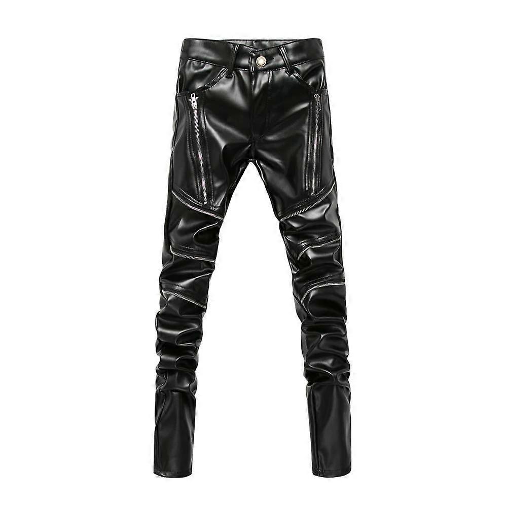Men Skinny Biker Pu Leather Pants High Street Fashion Motorcycle Trousers for Male Stage Club Wear