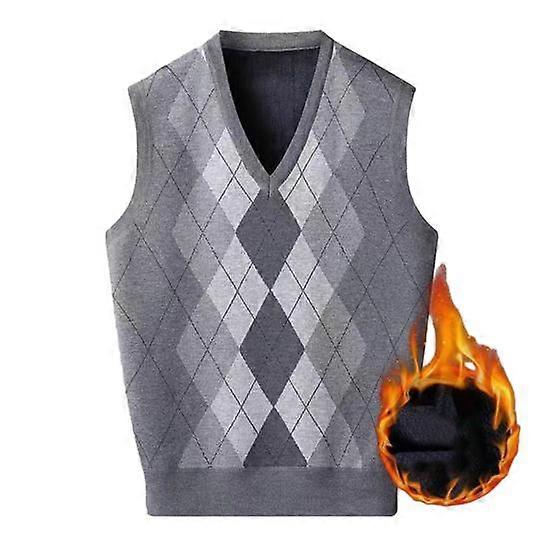 Men Fall Winter Vest Rhombus Print V Neck Sleeveless Loose Color Matching Knitted Thick Warm Soft Mid Length Applique Pullover Men Spring Sweater Vest