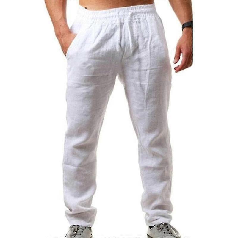 Summer Men Linen-look Pants Yoga Loose Baggy Holiday Beach Trousers