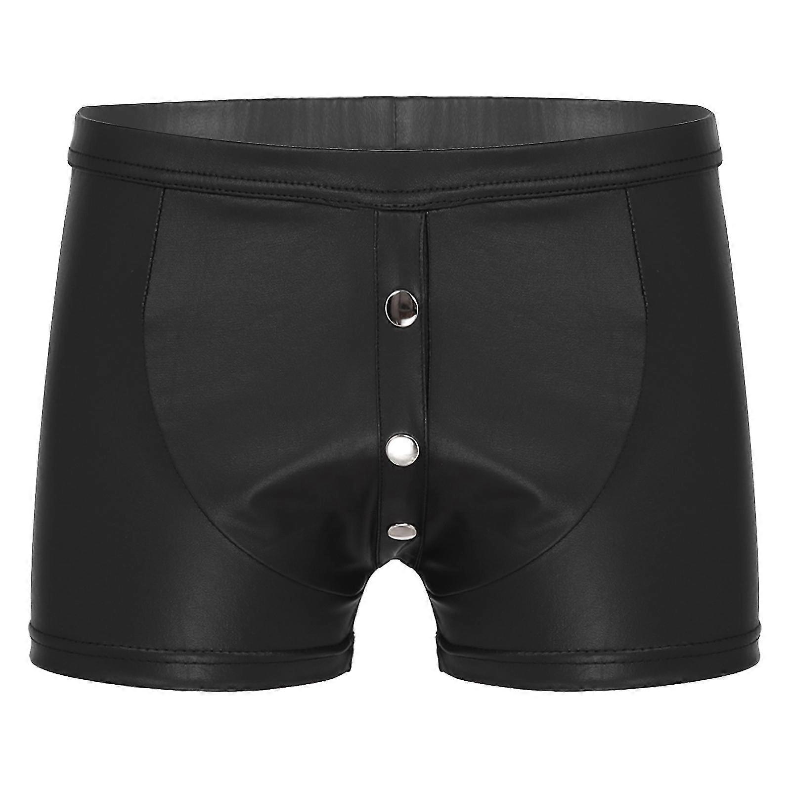 Mens Zipper Crotch Faux Leather Boxers Shorts Low Rise Elastic Waistband Shorts Nightclub Party Stage Performance Rave Costume