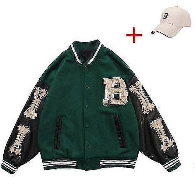Men Varsity Bomber Jacket Harajuku Korea Bone Letter Patchwork Hip Hop Streetwear Single Bbreasted Baseball Coats Unisex College 2025