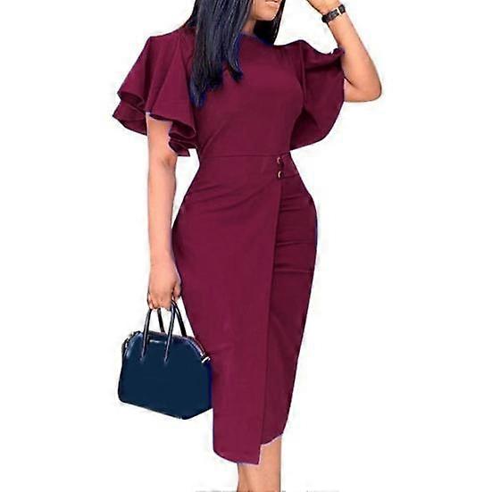 Lady Petticoats Plus Size Formal Dress Solid Color Split Hem Summer Slim Crew Neck Dress for Wedding