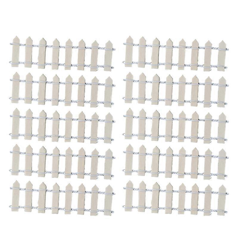10Pcs Miniature Fence Handmade Decorative Cute Garden Gnome Wood Fence Ornament for Flowerpot Qinhai