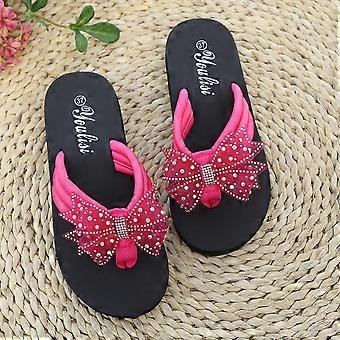 Large size women's flat flip flops women summer thick bottom trendy butterfly rhinestone beach sandals women