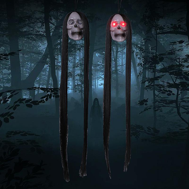 Halloween Hanging Ghost Skull With Long Hair Glowing Eyes Halloween Decoration