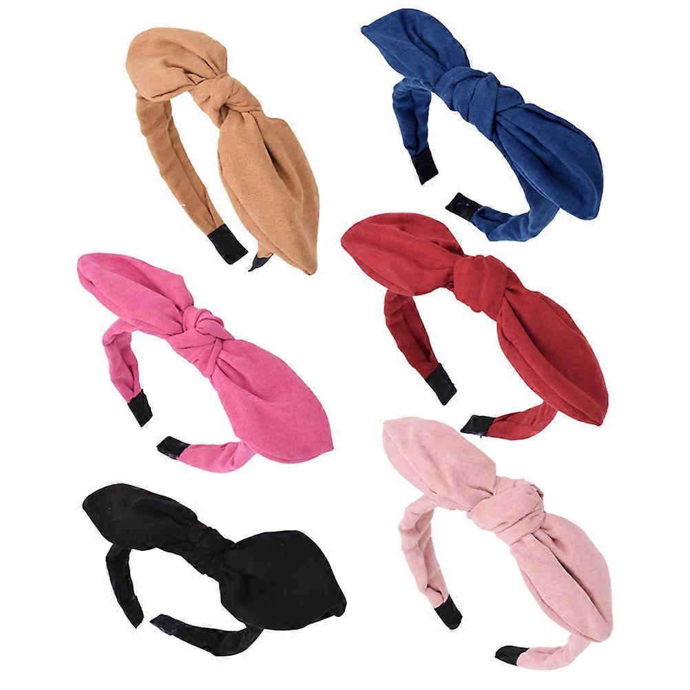 Wide Bow Hairband High Ponytail Holder For Women Girls Party Knot Shape Rosy Pink 6Pcs