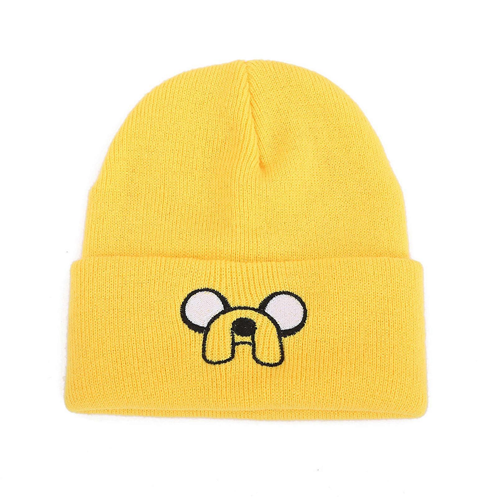Lovely Puppies Pattern Hat Embroidered Knitted Hat Ear Protecting Winter Hat for Autumn and Winter Yellow