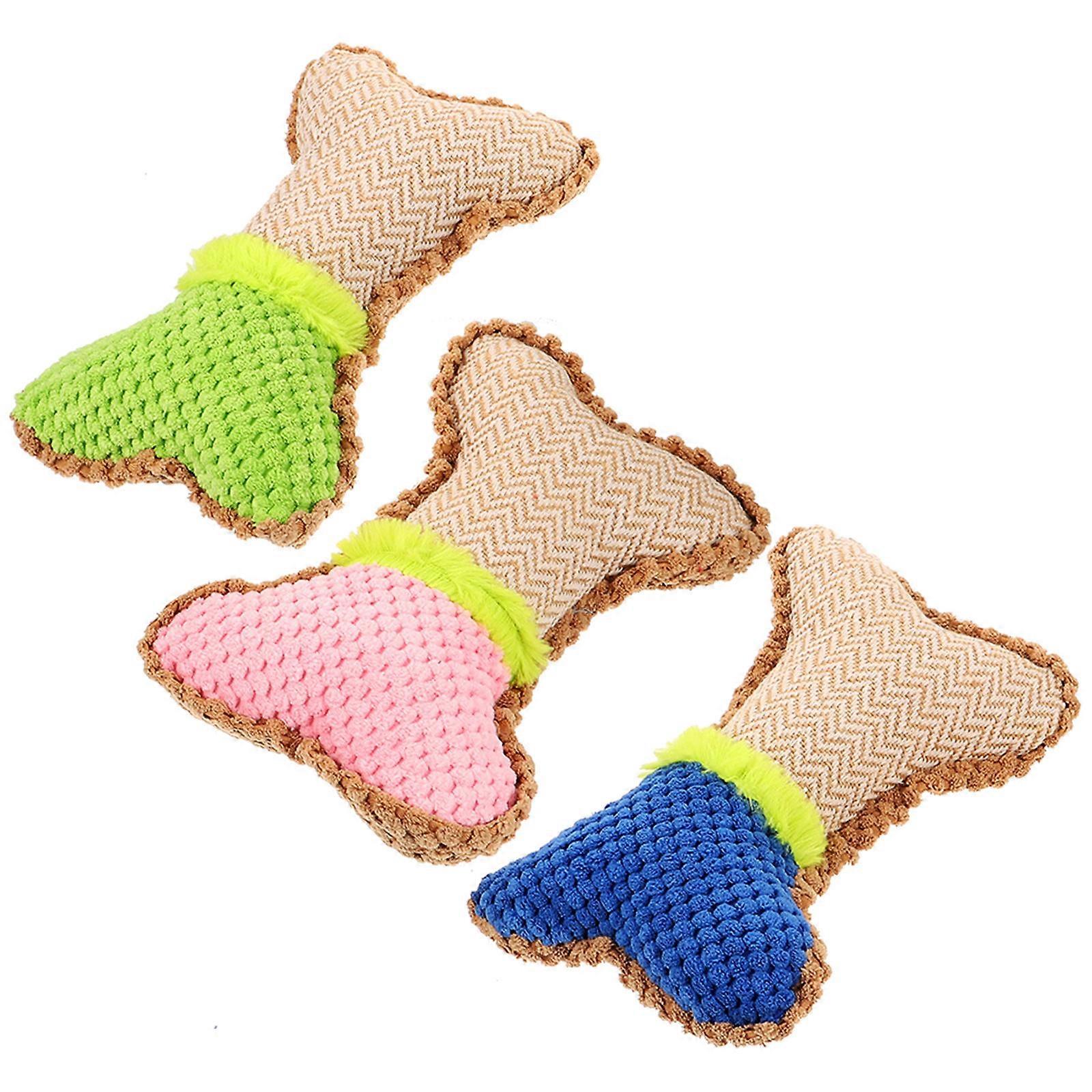 This funny Dog Chew is made of plush material, which can withstand use, not easy to deform. Great way to change the bad biting behavior of pets, such as biting the shoes and furniture. Cleaning their teeth while playing, and reduce their destructive behavior. Features -Color:Assorted Color -Material:Plush -Size:21.50X11.50X5.00cm/8.45X4.52X1.97in -This dog biting can increase the interaction between dogs and people, promote trust, release the dog's extra energy, thus the dog's . -The , high-visibility colors will successfully attract your pet's curiosity. Small and adorable easy to , can be reused. -Chewing while playing, grinding teeth teeth both, your lovely pet. -Let the dog not be lonely. Effectively dogs from demolishing our home. -The chewing is suitable for pets chewing, grabbing and playing. them happy to play. Package list: 3