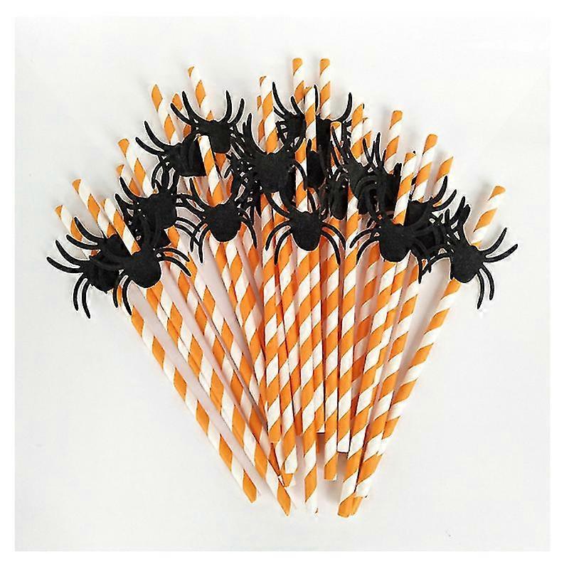 Jianghuo Ecological Halloween Paper Straws 25 Pieces White Black Orange Bats Ghost Pumpkin Halloween Birthday Party Decorations