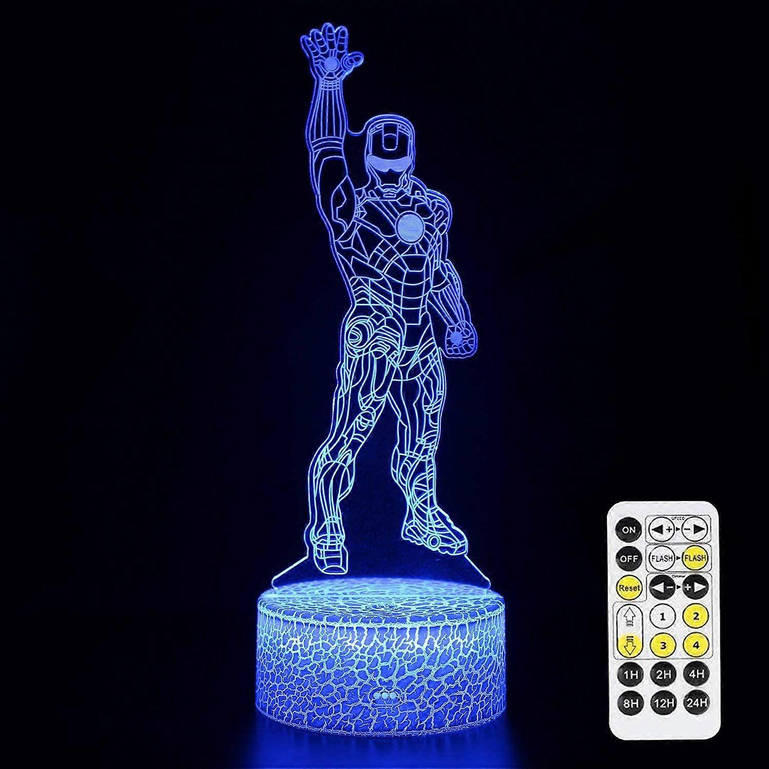 Superhero Avengers Marvel Toys, Night Light for Kids 3D Illusion Lamp with Remote 7 Colors (Iro