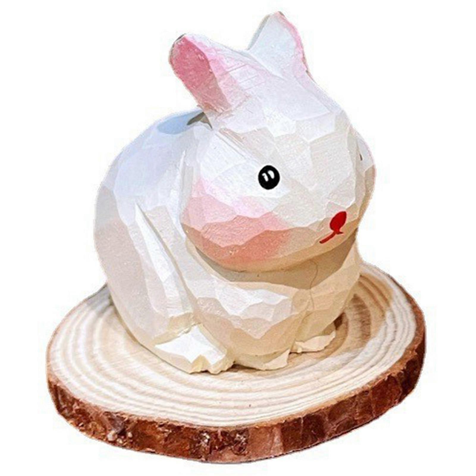 Wood Carving Little Rabbit Ornaments Creative Craft Tabletop Statue for Living Room Bedroom Decor