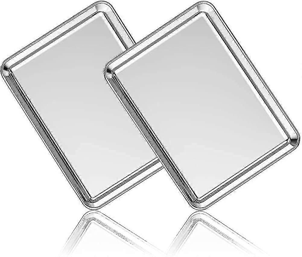 BAKING PANS SHEETThe set of 2. 10.6 x 7.2 inch. Suitable for most ordinary electric ovens. Perfect to be used as cookie pan or baking tray for your regular oven and toaster oven. You can enjoy interesting. delicious and family-style meals throughout your life. VARIETY OF BAKINGSuitable for baking or grilling. making cakes. roasting chicken. cookies. Also suitable for holiday barbecues. grilling meat. fish. vegetables. and even fruits with meat or charcoal grills. This set is a good helper for the kitchen. EASY TO CLEANA smooth surface and a deep design to prevent juice and food from spilling. You can safely put the bakeware in the dishwasher. Easier to clean after soaking in warm water. SAFE AND HYGIENIC MATERIALAIKKIL baking pans sheets are made of 100% high-quality stainless steel without any toxic chemical coating. While enjoying the food. also ensure the health of you and your family. We use high-quality stainless steel. no need to worry about the bakeware being easily twisted. CRAFT PRODUCTIONOur stainless steel bakeware has an excellent mirror finish to reduce the risk of food sticking to the food. smooth curved edges make it comfortable to hold and transfer. Good stainless steel material casts good toughness.