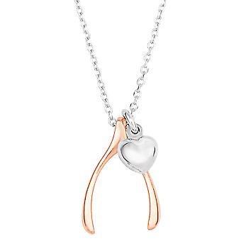 Sterling Silver Rose Finish Wishbone Puffy Heart Necklace, 18"